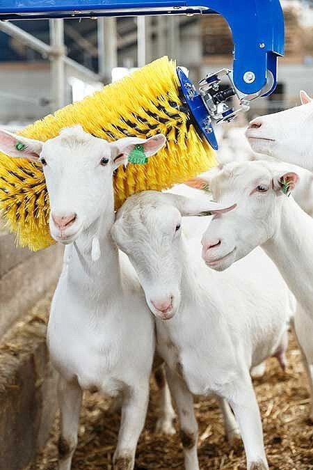 The new DeLaval Mini Swinging Brush MSB is a cost-effective way to promote animal welfare and boost productivity. Once installed in the barn it is in constant use by the goats. Their hides are cleaned and blood circulation is stimulated. Grooming is the natural way for your animals to scratch itches. The mini swinging brush helps them do this without injuring themselves on sharp edges in the barn.